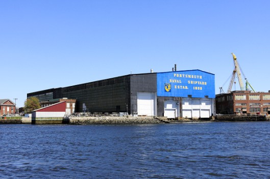 船沿著河道往下游開,左岸是緬因州,右岸是新罕布夏州。不久左邊即可看到從1800年即開始服役的樸次茅斯海軍造船廠(Portsmouth Naval Shipyard),一戰、二戰時美軍使用的許多船艦與潛水艇都是在此製造。雖然造船廠以樸次茅斯之名,但實際位於緬因州。
