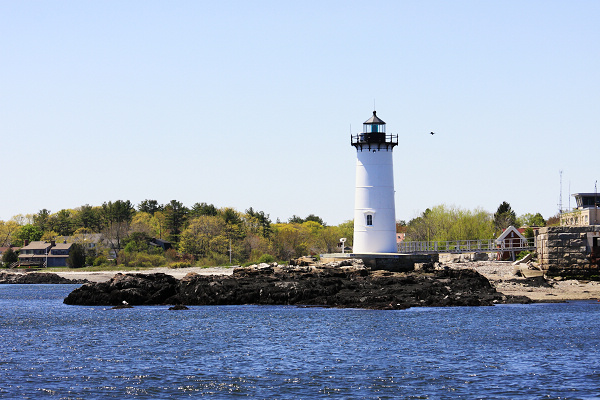 過了海軍基地,海灣右方的白色燈塔,是位於樸次茅斯旁邊新堡(New Castle)島上的樸次茅斯港燈塔(Portsmouth Harbor Light),初建於1771年,現在的燈塔則於1878年建立。