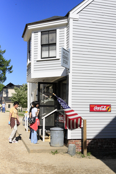 我們剛好趕上下午五點園區關閉時間之前,把主要的建築都走馬看花了一圈。雖然沒有看得非常仔細,但依然學到不少美國早期殖民時代的文化。例如美國人蓋房子,主要一直都是用木頭,不像台灣以土埆磚塊為主。而且兩層以上的樓房自古就相當流行,除了有錢人的豪宅之外,樓梯大多相當陡峭狹小。園區也展示了許多當時的服裝,發現許多女性洋裝、禮服、高跟鞋的樣式,似乎百年來都沒有太大的改變;改變比較多的,我想應該是合成纖維、塑膠等材質跟染料的部份吧。