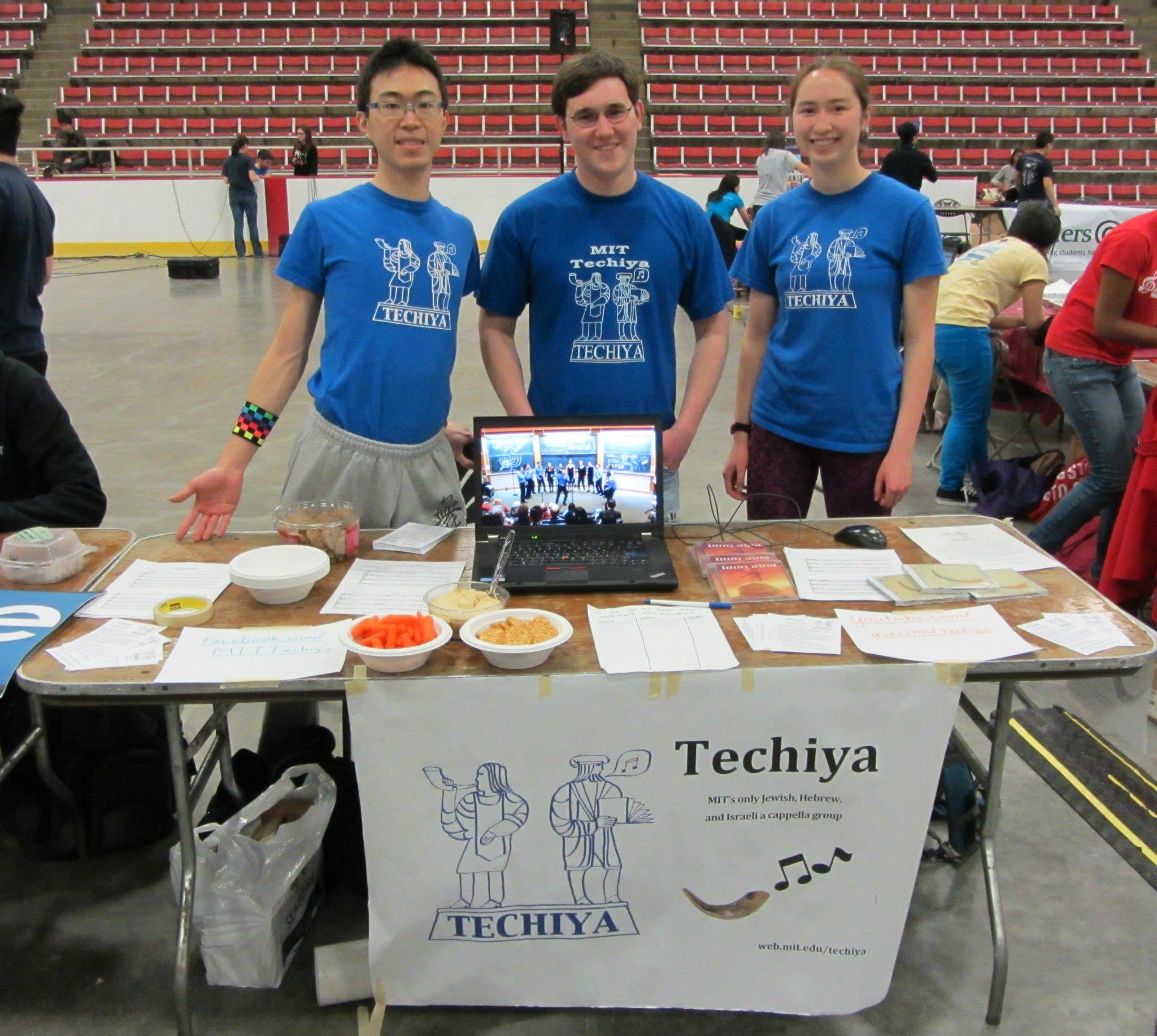 社團博覽會也有一個表演場地,可讓有需求的學生社團表演。因為博覽會辦在體育館,很吵而且音響效果差,Techiya曾經唱過一次,但團員要聽到對面團員都有困難,聽眾聽起來效果想必差強人意。所以基本上這個表演場合拿來跳舞還可以,唱歌恐怕就不是個好主意。加上這天是週六,是猶太人的安息日(shabbat);我們考慮到對Techiya有興趣的學生,可能有非常虔誠的猶太教徒,因此團上有不成文規定,不會在週六練唱和辦活動,以免這些團員感覺被冒犯。因此我們也就決定不在社團博覽會表演。儘管如此,依然有不少新生表示興趣,希望下個學期可以招到更多團員!